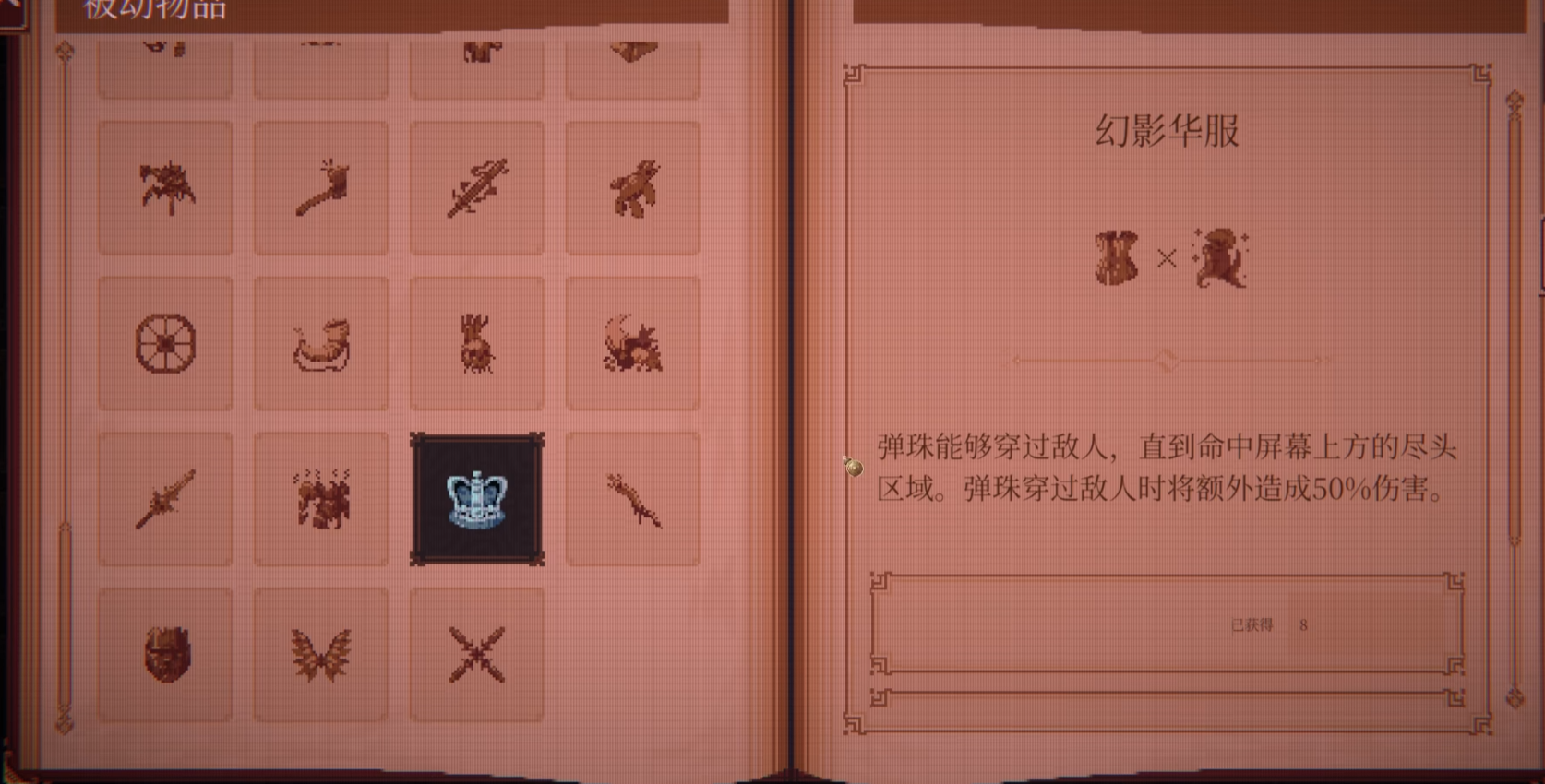 控制型流派的优选配置为“幻影华服”。装备后,弹珠获得全程穿透特性:可沿初始轨迹贯穿所有路径上的敌人,并抵达屏幕顶部边界;每次穿透均造成原伤害50%的额外伤害。该效果彻底重构弹珠物理模型,使单发弹珠具备多目标串联打击能力,尤其适配纵向密集布阵的关卡结构。叠加的穿透伤害并非辅助增益,而是构成群体压制效率跃升的关键数值支点。