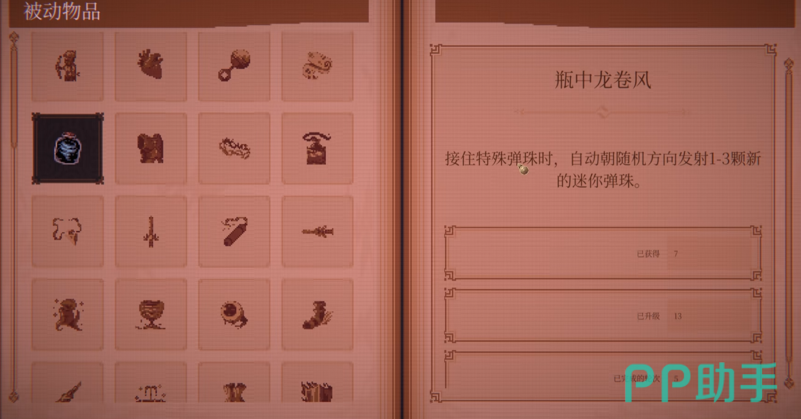 另一件关键道具“瓶中龙卷风”,是弹珠数量流派的基石。其效果为:当角色成功接住特殊弹珠时,随机生成1至3颗迷你弹珠。该机制看似简单,实则具备极强的连锁放大效应——单次触发即可引发多层分裂,使屏幕内弹珠总数呈指数级攀升,迅速构建高密度覆盖火力网。对依赖弹珠数量激活特效、或以范围压制为核心清图逻辑的构筑而言,该道具直接决定流派强度上限,将原本线性输出转化为全域压制型战斗节奏。