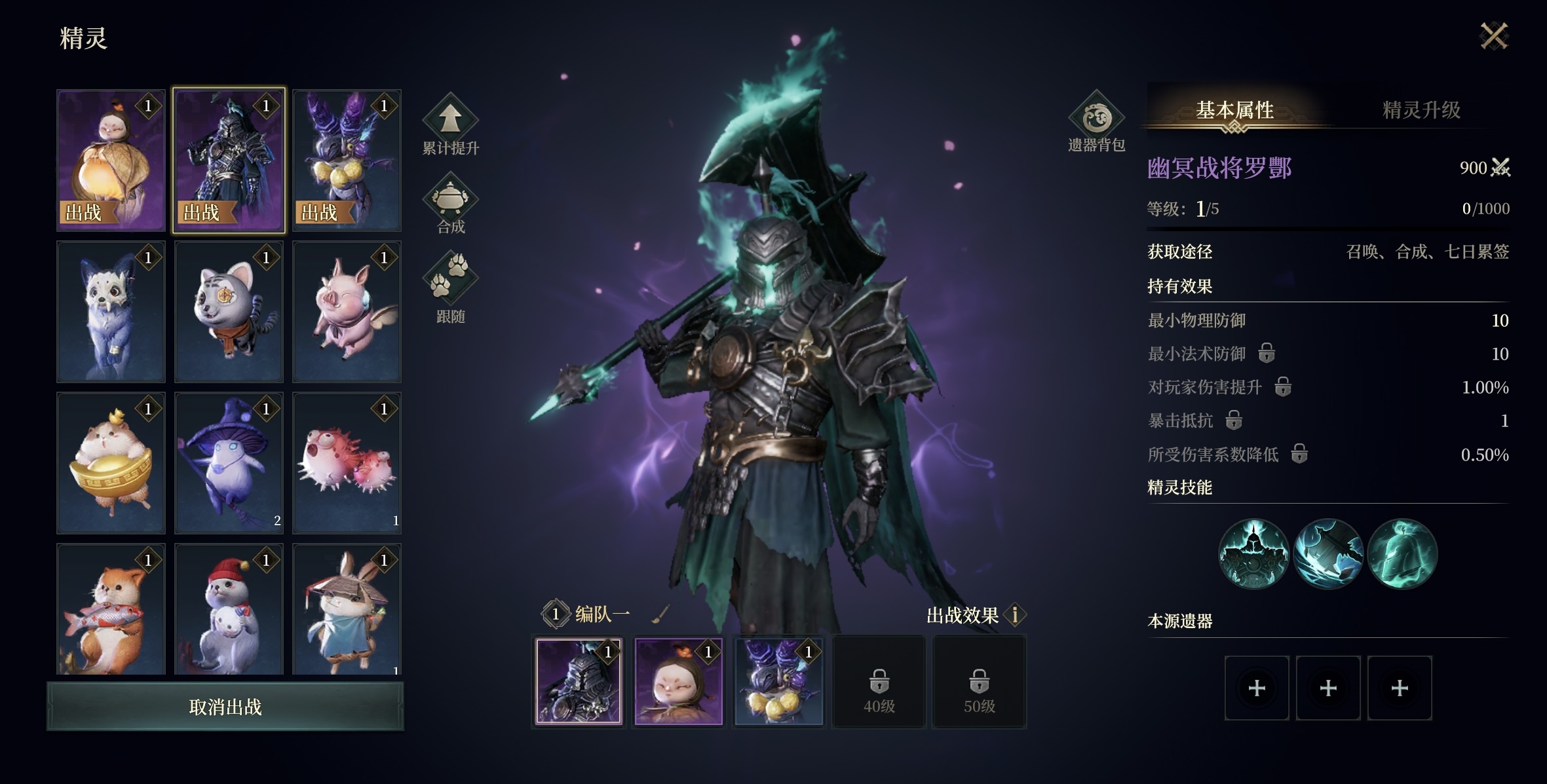爱之魔女是当前版本中最优的续航型精灵,攻击时有概率恢复自身最大生命值3%的生命,受击时则有概率为一名友方单位生成相当于其最大生命值15%的护盾。该机制大幅降低药品消耗频率,显著提升长时间挂机与连续挑战场景下的资源利用率。完成四金阵容后,第五位精灵建议选用紫色品质的幽冥战将——该精灵可通过游戏内活动免费获取,其被动效果可同步提升自身物理攻击上下限与法术攻击上下限,适配战士、法师、刺客等全职业体系,属于泛用性强、成长潜力高的输出补强选择。