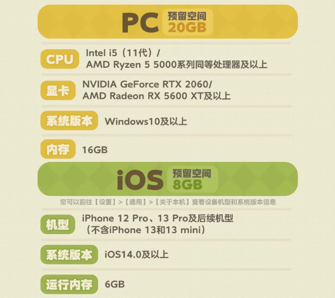 在处理器及操作系统方面,也有明确门槛。移动端目前未开放安卓测试,iOS设备需搭载A14及以上芯片,并运行iOS14或更新系统版本;PC平台则要求至少配备第11代Intel i5处理器,显卡推荐RTX2060或同等级产品,且操作系统需为Windows 10及以上版本。
