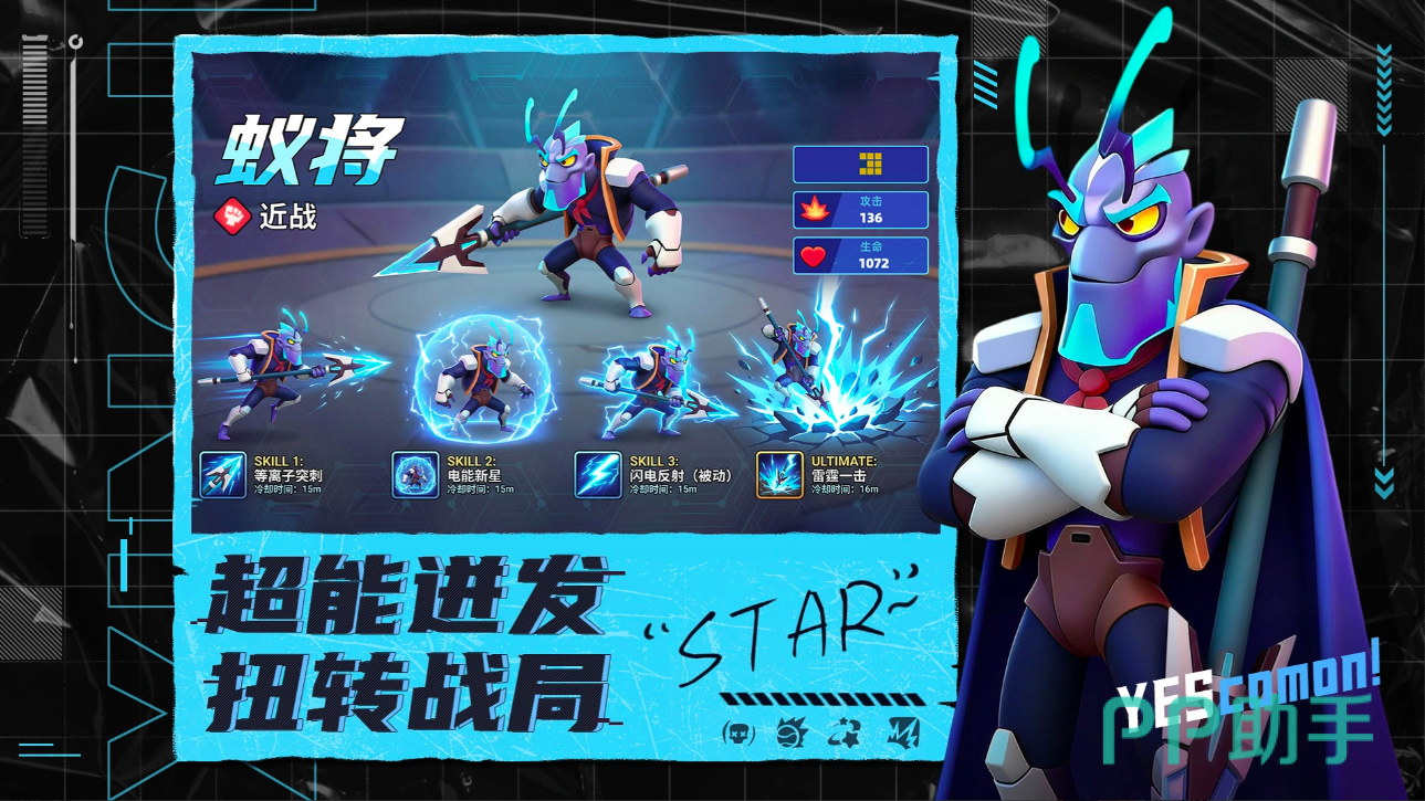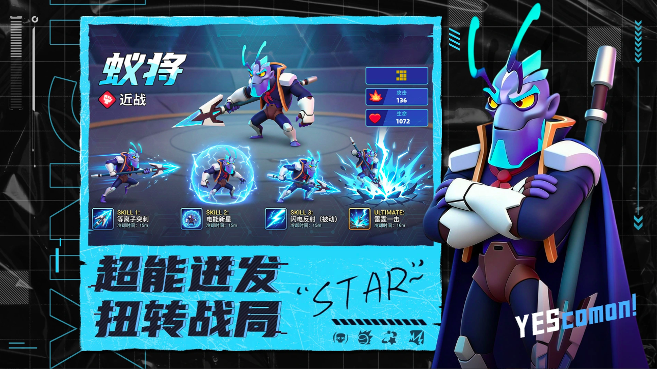 美术风格采用全3D建模,融合美式漫画张力与硬核科技美学。战斗特效大量运用光学渲染技术,提升技能释放与爆炸反馈的视觉冲击力。地图机制引入动态地形变化与随机事件触发系统,迫使玩家在每局对战中重新评估防御塔布局与英雄配置策略,显著增强临场决策权重。