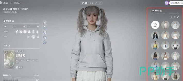 还可以选择不同的发型服饰以及配饰,拉动小圆点就可以针对无关的细节去做出调整。如果有一些玩家并不擅长捏脸,还有几十种预设可以选择,可以去挑选一个符合需求的预设,然后去完成个性化的调整。