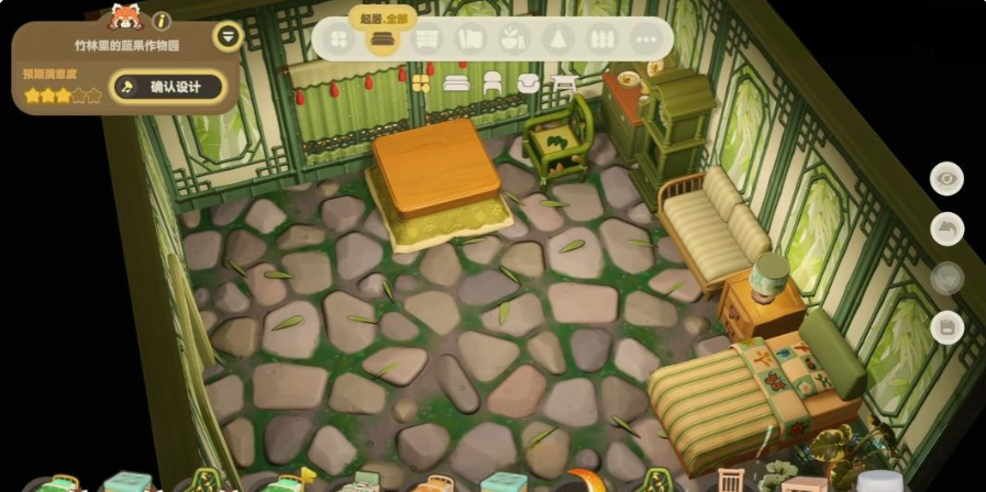 在确定大体格局后,家具选配同样不可忽视。基础款家具可通过木匠铺获取,其商品列表每日刷新,涵盖多种造型与材质选项;稀有款式则有机会在旅行货车随机出现,提升收藏与搭配多样性;为保障最终呈现效果协调统一,建议玩家在动工前明确意向风格方向,例如田园风强调绿植穿插与暖色木质,原木风侧重天然纹理与简洁轮廓——风格先行,再逐项匹配对应家具,整体视觉完成度将显著提升;