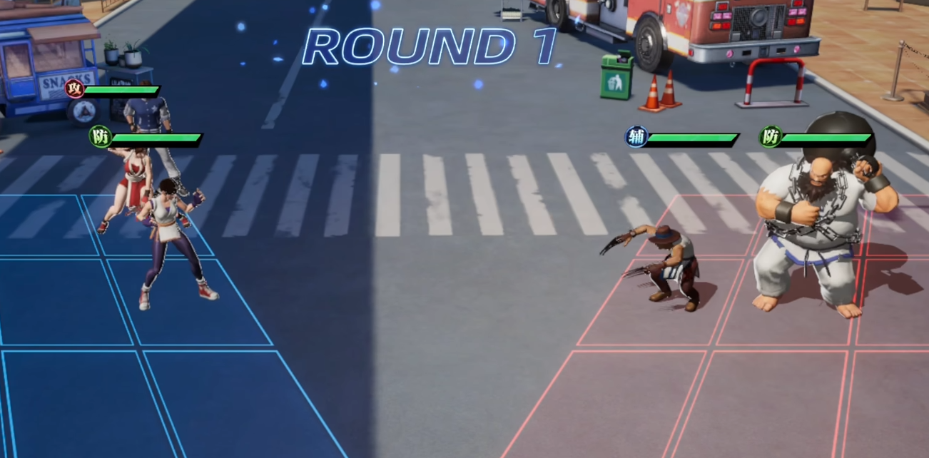 目前开放的核心联机模式为3v3车轮战。每局比赛中,每位玩家需预先配置三名角色(如草薙京、不知火舞等),但双方在对战开始前无法查看对方出战阵容,强调临场判断与战术应变能力。