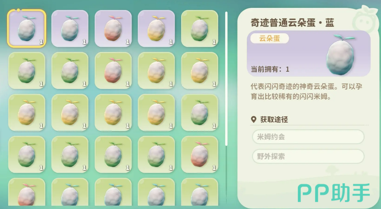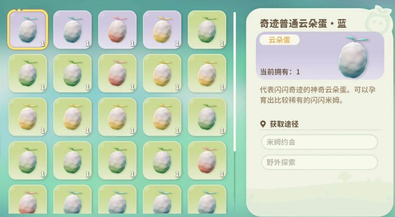 首先,孵蛋的第一步是解锁“恋爱帐篷”。当你角色的等级达到16级时,这个功能就会解锁。在这里,你可以将两只异性米姆放入帐篷,让它们进行甜蜜的约会。只要有足够的苍翠小花,你就能成功促成这对米姆的亲密关系,进而获得一个云朵蛋。此外,除了通过约会获得蛋,你也可以在游戏地图上找到一些野生的云朵蛋,随机捡到也是一大惊喜。