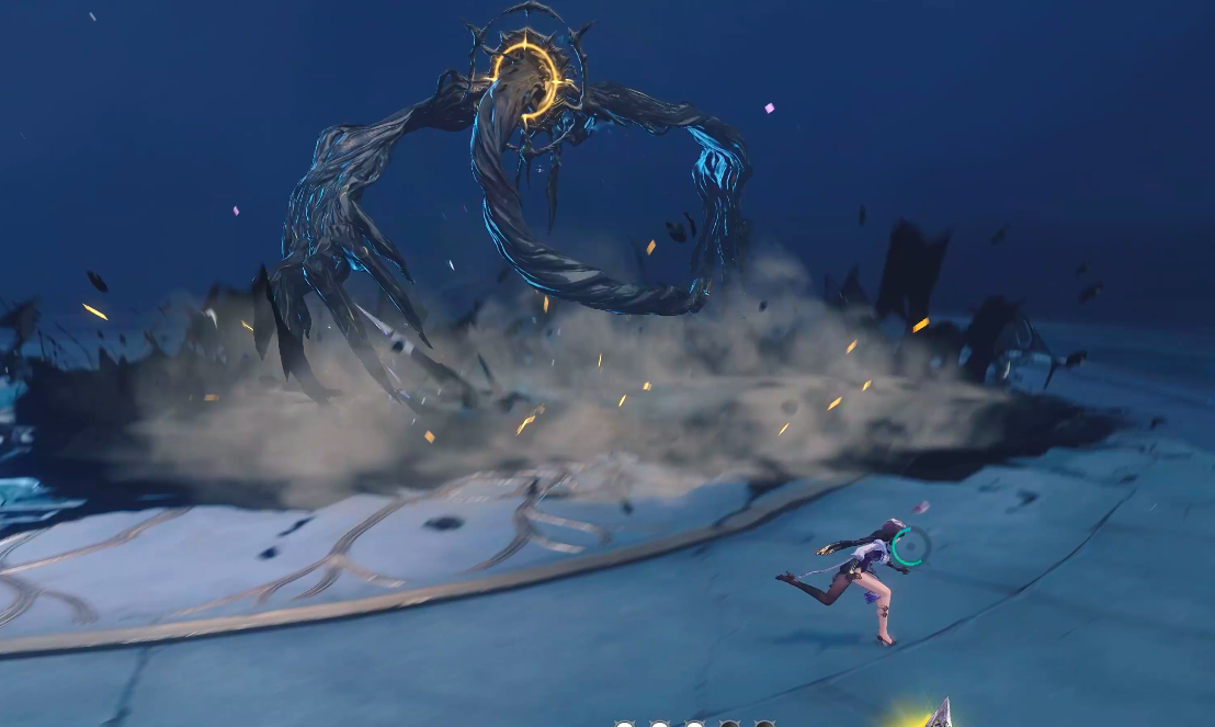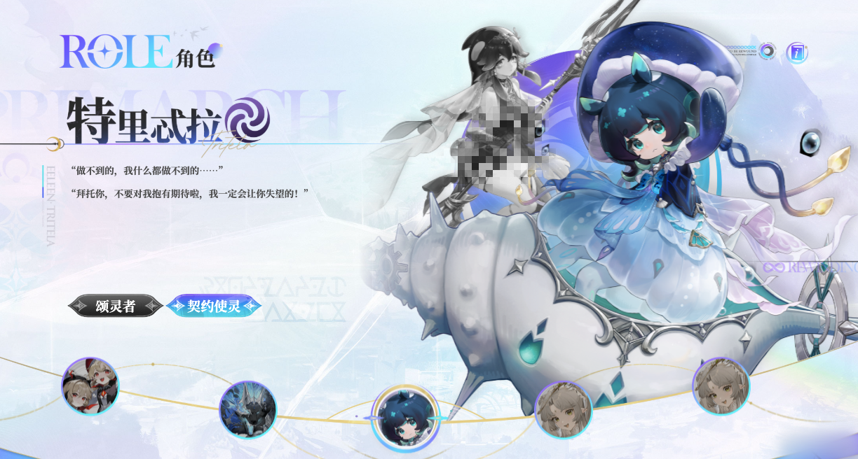 其专属契约使灵“特里忒拉”呈现水母形态,外观柔软亲和,性格倾向保守,但实战中承担核心控场职能。该使灵拥有冰属性输出与冻结效果,可在Boss技能释放间隙快速建立控制链,延长团队安全输出窗口。同时,其探测反馈机制与潆的战术推演深度耦合,在机关破解类关卡中能显著提升解题效率与容错空间。