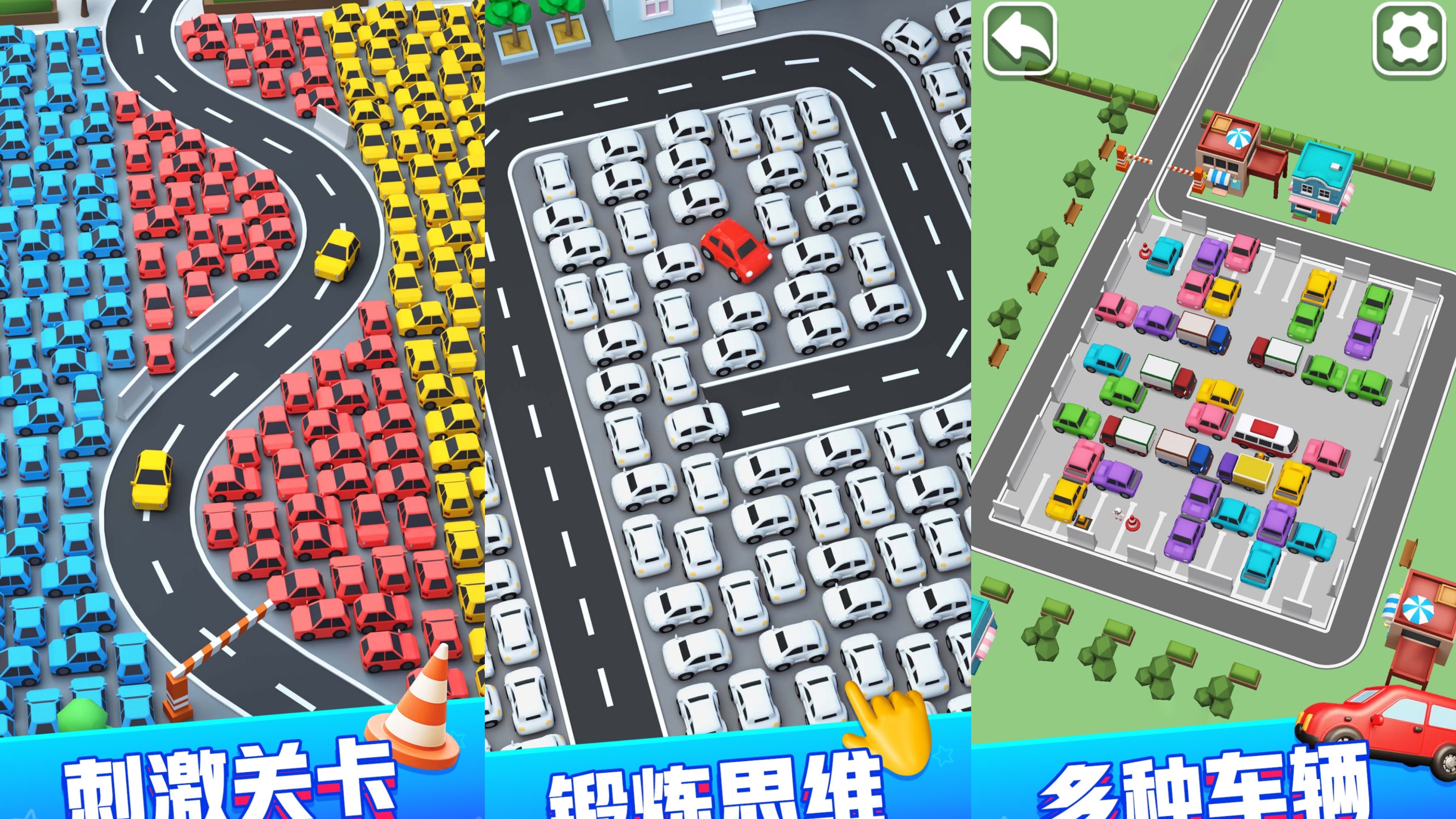 停车场里停满了各种各样的车,小车卡车面包车,玩家的任务就是需要将停车场的车有序的挪走。听起来是不是特别简单呢?nonono!每辆车都有自己的想法,它们看起来杂乱无章,而且每关都会有限制条件,比如步数什么的,所以一定要仔细观察规律哦!每过一关,难度就会增加,车的数量也会增加,快来开动你的小脑袋,为停车场减轻压力吧!