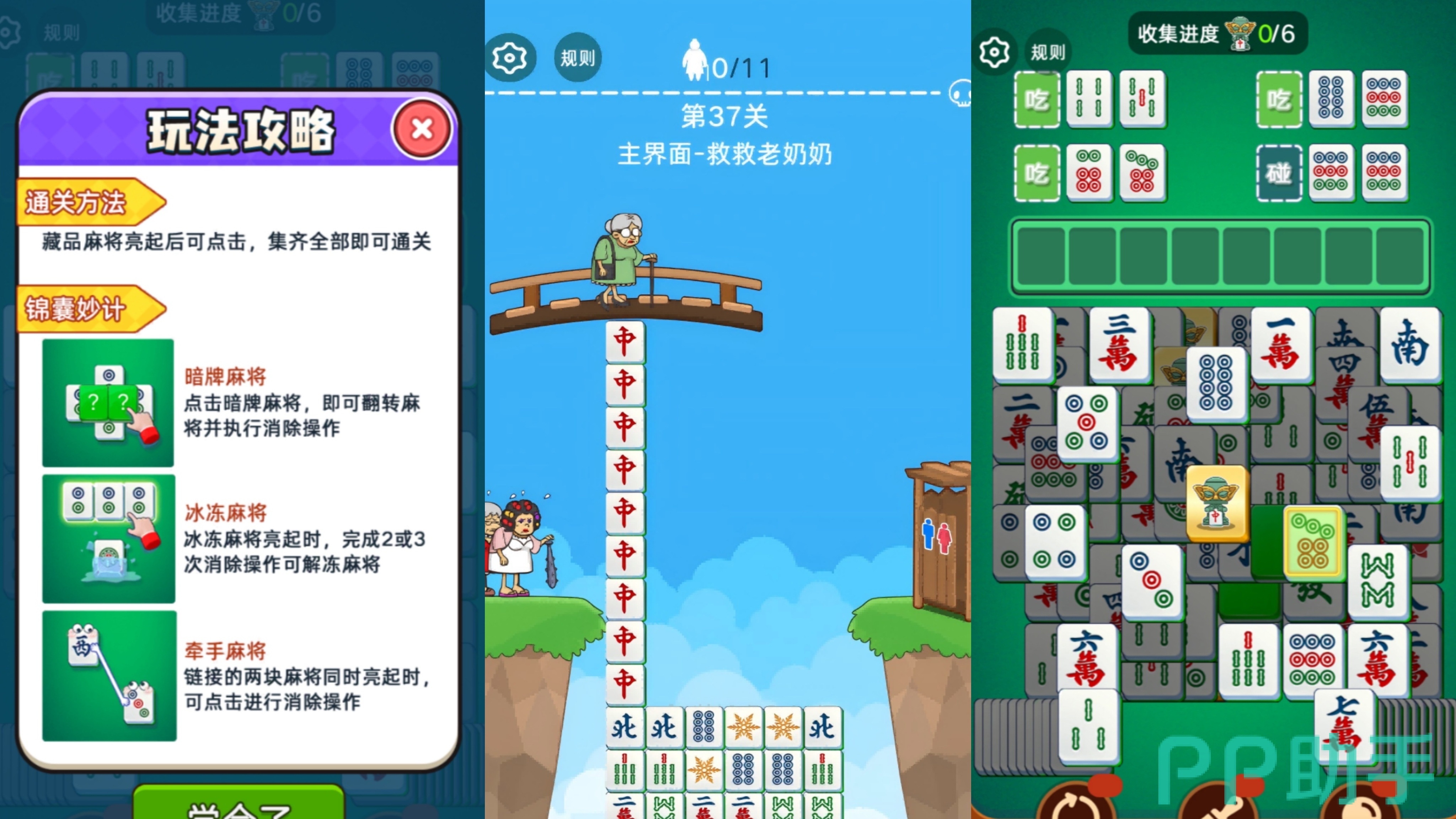 这是一款集合了麻将元素的消除休闲类游戏。游戏操作非常的简单,玩家只需要将麻将消除就可以了。游戏融合了麻将中的杠碰消玩法,还有特别有趣的“拯救老奶奶”玩法,每一关都会让你有不一样的麻将体验!并且游戏随时随地,没有任何限制,只要你想玩了,就可以拿出手机打开游戏开始一场轻松惬意的麻将消除之旅!