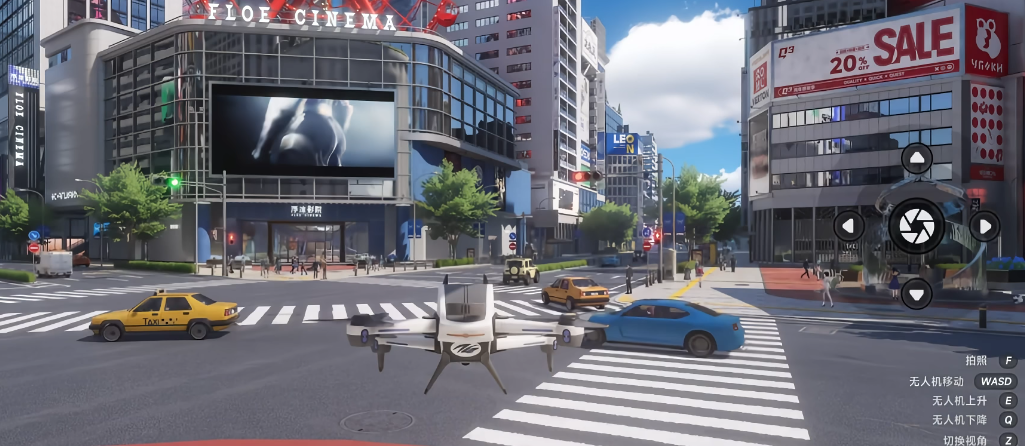 启动方式简洁直观:点击屏幕右上角【无人机】图标即可切换至飞行视角。进入后,玩家可自由调节飞行高度、旋转镜头角度,并实时构图取景。该操作逻辑适配移动端触控习惯,响应流畅,无明显延迟。