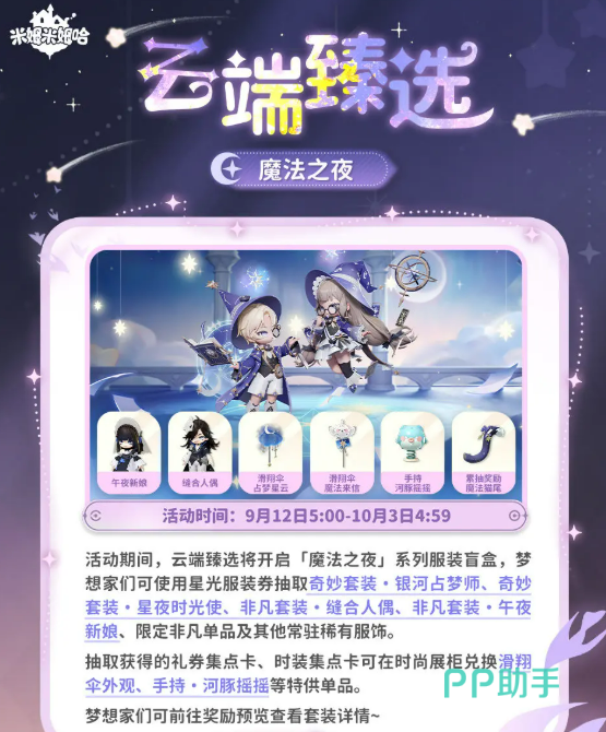 外观党将迎来狂欢时刻!从9月12日至10月3日,“魔法之夜”系列盲盒限时上架,内含银河占梦师、星夜时光使、午夜新娘等梦幻套装。集齐对应点数还可兑换专属手持物——河豚摇摇。与此同时,“森夜露营”系列活动推出月牙吊床、奇妙帐篷等特色家具,为你的私人空间注入全新氛围。