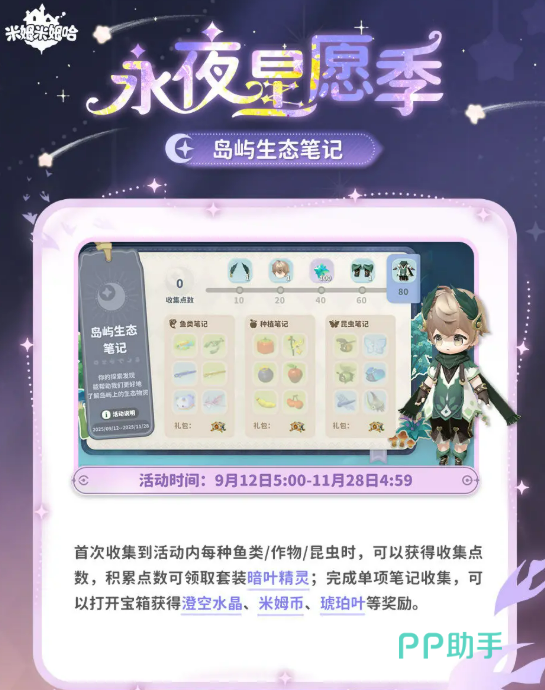 持续至11月28日的“岛屿生态笔记”活动鼓励玩家深入探索环境。通过采集鱼类、昆虫与作物等自然资源积累积分,最终可兑换暗叶精灵套装及其他珍稀奖励,为收藏型玩家提供了绝佳机会。