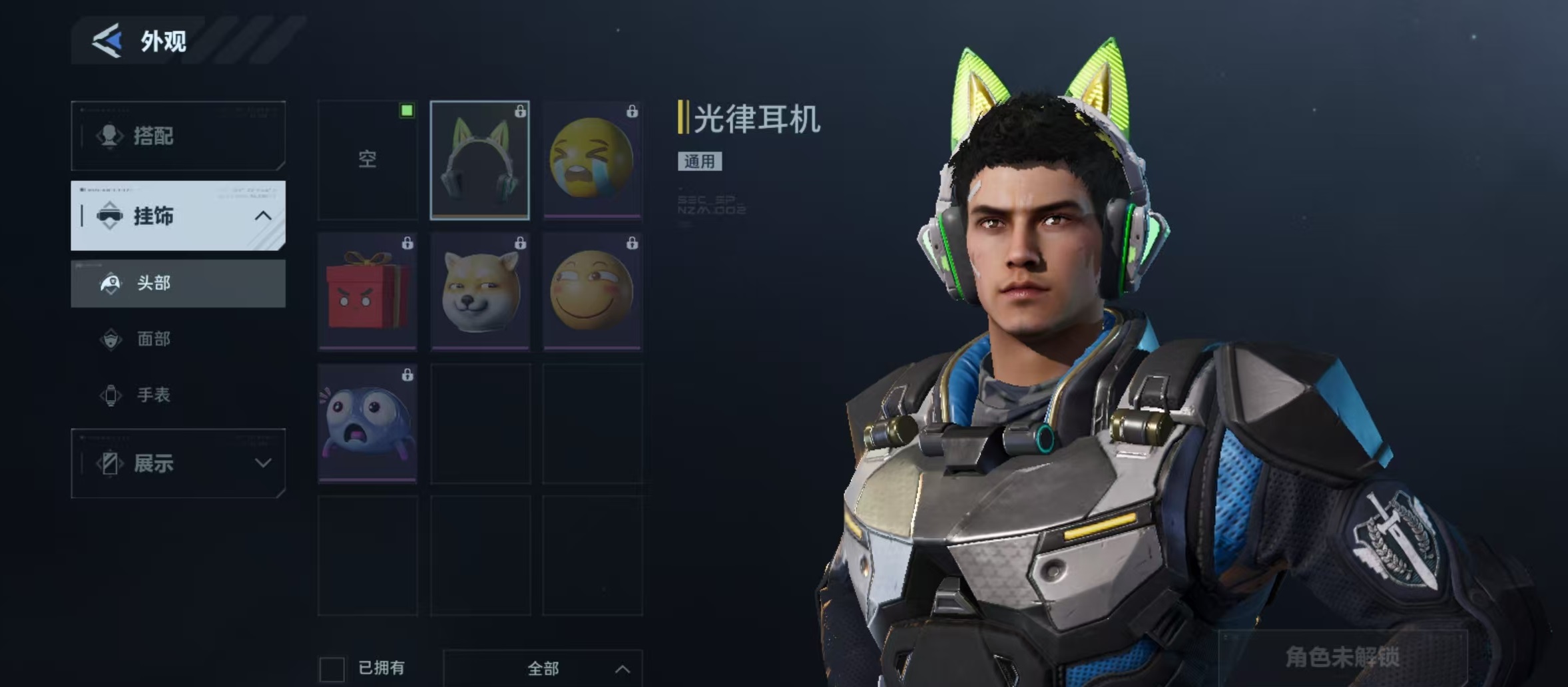 完成购买后,角色即时解锁并同步至角色库。进入“角色定制”模块,可对万飞时序特警进行多维度外观调整:头部挂饰提供光律耳机、滑稽头套、惊讶头套三款可选配件;面部组件涵盖幻光护目镜、Z博士眼镜等风格化面甲,每种均可独立启用或关闭;手表仅开放逆行手环与快递手环两种样式;背景板与底座亦支持更换,用于优化角色展示效果。