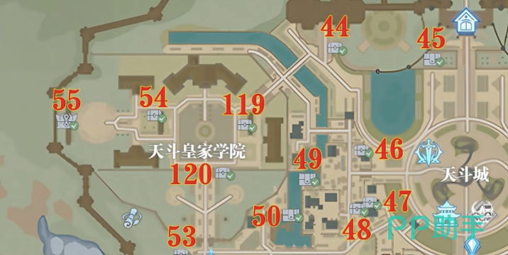 天斗城的中心区域,尤其是史莱克学院附近,虽然宝箱分布较为分散,但仍然可以收集到5个宝箱。此外,史莱克学院右上的天斗城居民区内,玩家也能找到4个宝箱。需要特别注意的是,虽然这些宝箱位置比较分散,但每一个都可能是提升实力的重要资源。