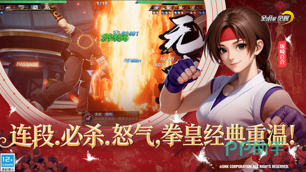 本作获得SNK正版授权,完整收录《拳皇》《饿狼传说》《侍魂》等系列经典角色,包括不知火舞、大蛇、欧米伽卢卡尔等标志性格斗家。所有角色均采用动态骨骼驱动技术,技能释放轨迹、受击反馈、帧动画细节均严格对标原作,确保招式逻辑与视觉表现双重还原。