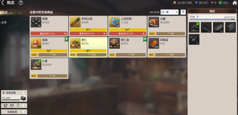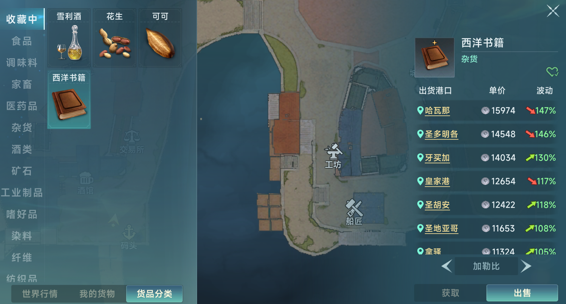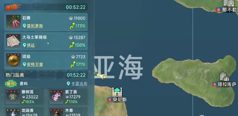 上述航线中,香水、手工陶瓷、挂毯等文化类商品常年维持稳定价差:采购价普遍低于市场均价12%–18%,转售溢价可达25%–35%。若追求更高单次回报率,可切换至里斯本—马德里跨陆海联运模式。该路线虽需经直布罗陀海峡中转,但杏仁作为葡萄牙特产,在里斯本采购成本极低(约800–1100金币/单位),运抵马德里后售价常达2600–3300金币/单位,单程毛利空间超过150%,资金周转效率显著优于短途线。