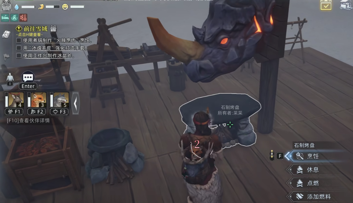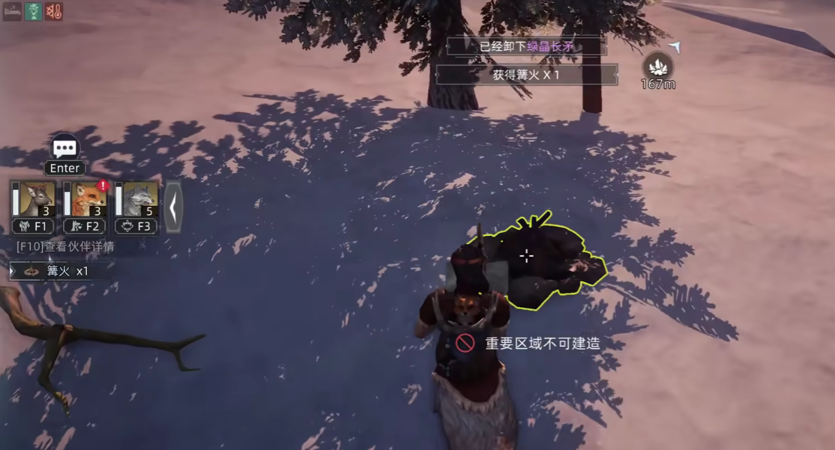 最初级的取暖设施是篝火,它能够提供基础的保暖,并且还能够烹饪食物,不止如此,在雪山区域当中,所有冰冻的水源或者是生物,都可以使用篝火来融化,玩家只需要使用木材和碎石制造,就能够将其搭建成功了,但是篝火具有一定的耐久度,并不能够长时间点燃,不属于持久性的保暖设施。