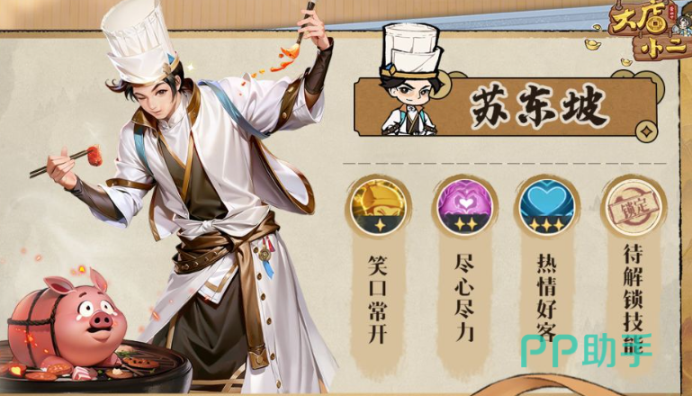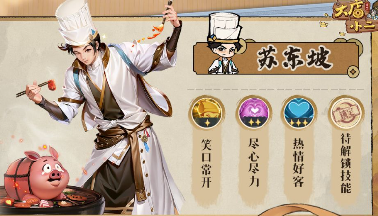 在《大店小二》这款模拟经营类手游中,门客系统是提升店铺收益的核心机制之一。其中,苏东坡作为前期关键的高价值角色,不仅能显著加快金币与流水产出,还能深度参与客栈运营,为玩家提供多维度经营增益。