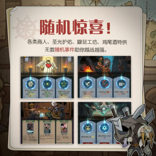 地图探索过程中会随机刷新特殊事件点,包括商人摊位、圣光护佑祭坛、鼹鼠工坊及鸡尾酒特供站等。这些节点提供增益状态、稀有道具或临时强化选项,对中期战力跃升具有关键作用。建议主动靠近并充分交互,勿因路径规划忽略潜在收益。