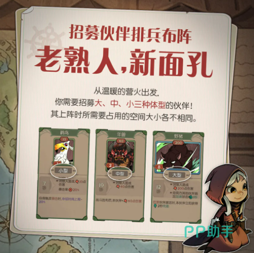 初始阶段需完成伙伴招募。伙伴按体型划分为大、中、小三类,对应不同战场占格数:大型伙伴单体战力突出但占用空间大;小型伙伴机动性强,利于多单位协同布阵;中型则兼顾平衡性。阵容配置无标准答案,需结合自身卡组特性、技能联动倾向及地图事件节奏灵活调整。