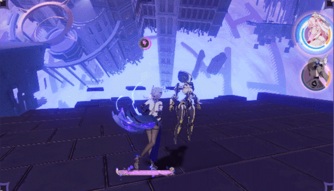 普通攻击方面,丽塔在地面可进行四段连击,第三击命中目标时会触发全局时空断裂效果,有效延缓敌方行动节奏;第四击成功命中后,能够回复“魅形”动能。当处于空中时,她可发动下落攻击,若在第四击过程中激活“重现”机制,则能再次释放该段攻击,并附加额外雷电伤害,同时恢复“魅形”值,提升输出循环效率。
