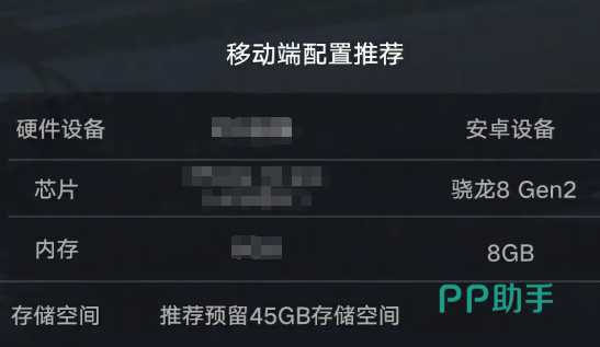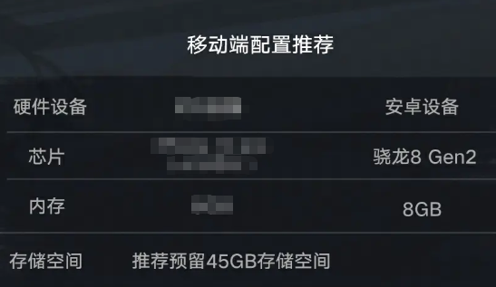 本作对终端设备性能提出较高要求。处理器方面,最低需搭载高通骁龙8GEN2芯片方可保障基础流畅度;运行内存不得低于8GB,推荐配置为12GB;本地存储空间须预留至少45GB,以满足游戏安装及资源缓存需求。