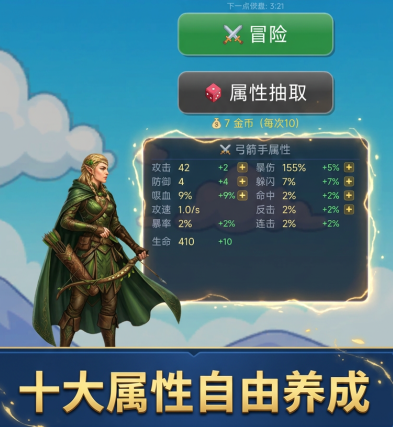 作为一款兼具解压性与成长感的竖版动作RPG,《弓箭手大冒险》适合碎片化时间体验。没有强制社交、无复杂肝度设计,单局时长可控,失败成本低。真正的成长源于每一次走位调整、每一发角度微调、每一级属性分配——从初出茅庐的新手弓手,到震慑四方的传奇射手,这份由实力积累而来的成就感,远胜于任何短期礼包加成。