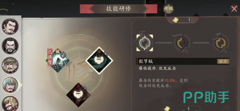 在培养方向上,推荐优先发展“强弓火矢”这一路线。该技能不仅拥有可观的基础伤害,还能附加灼烧状态,使敌人在后续回合内持续掉血。结合于禁本身较高的攻击力属性,能够在前期快速削减敌军兵力,提升清场效率。初期可配置突刺与猛攻类技能以增强输出稳定性——前者缩短出手延迟,后者直接提高伤害倍率;进入后期阶段后,建议替换为钩镰与假节钺等控制型技能。钩镰能为团队提供额外的控场支持,而假节钺则可在关键时刻创造更多合击机会,进一步放大天赋优势。