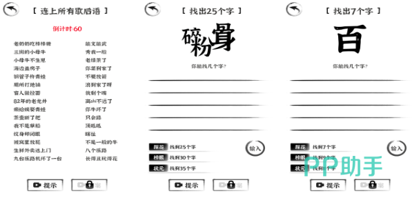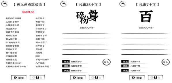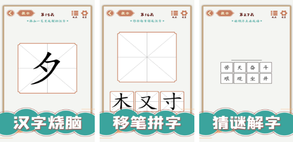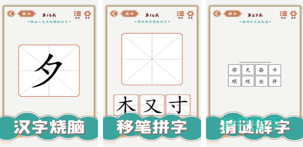 汉字多变化,也是一款非常好玩的猜字谜游戏,不仅可以在其中体验传统猜字谜的乐趣,而且玩家通过移动笔画、添加笔画,还可以创造出一个新的汉字,游戏中的关卡内容特别丰富,而且猜字谜关卡,可以分享给小伙伴们一起体验。多个难度阶梯选择,让初体验的玩家和猜字谜达人,都能够找到自己的专属快乐。
