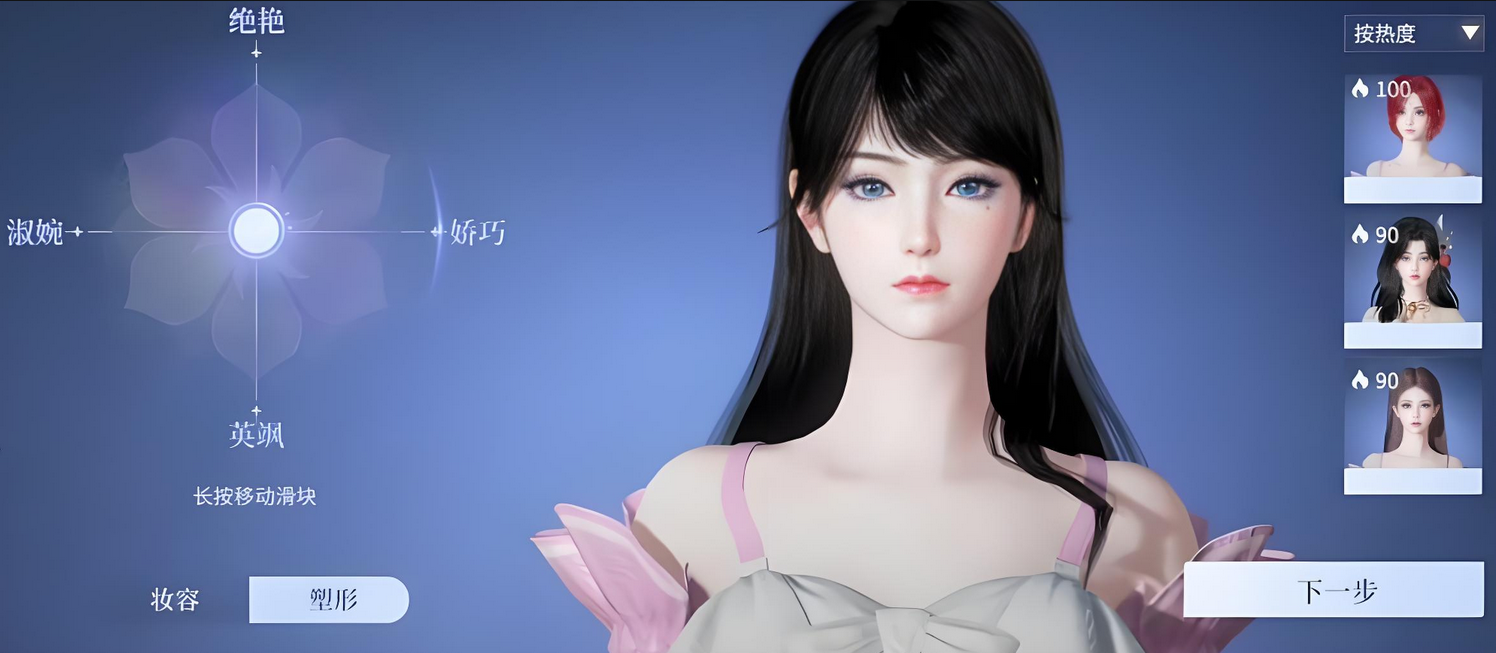 若追求更高自由度,玩家可进入手动编辑模式,对五官进行精细化调整。眼睛的形态与大小支持拖动调节,眉毛的粗细和色调也可自由更改。鼻梁高度通过滑块控制,发型长短、发色变化、肤色深浅等均提供多样化选项,确保每位玩家都能找到最适合自己的搭配方案。同时,妆容部分包含腮红与口红色号选择,浓度和色彩均可微调,进一步增强角色的表现力与独特性。