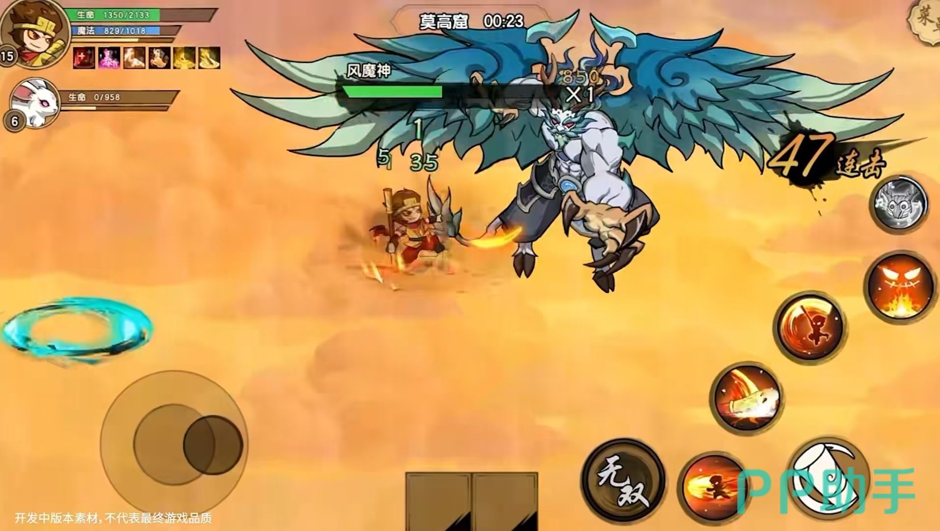 当前版本开放孙悟空、唐三藏、牛魔王三位可操作角色。孙悟空以高频突进与爆发伤害见长,位移灵活、上手门槛低,适合初接触横版动作玩法的用户;唐三藏主打中远程法术压制,输出稳定性强,容错率高,契合偏好策略站位的玩家;牛魔王则侧重生存与控场能力,具备大范围击退与硬直打断效果,适用于偏好正面压制打法的群体。战斗采用双摇杆操控逻辑:左侧虚拟摇杆控制移动,右侧集成轻击、重击及技能释放键位,配合闪避翻滚与精准格挡机制形成多维防御体系。成功衔接浮空、追击、连击等动作节点后,可激活角色专属联动技,显著提升实战表现力。赛季系统为本作关键减负设计,角色等级、装备强化、部分养成进度均可跨赛季继承,避免重复刷图与资源浪费。