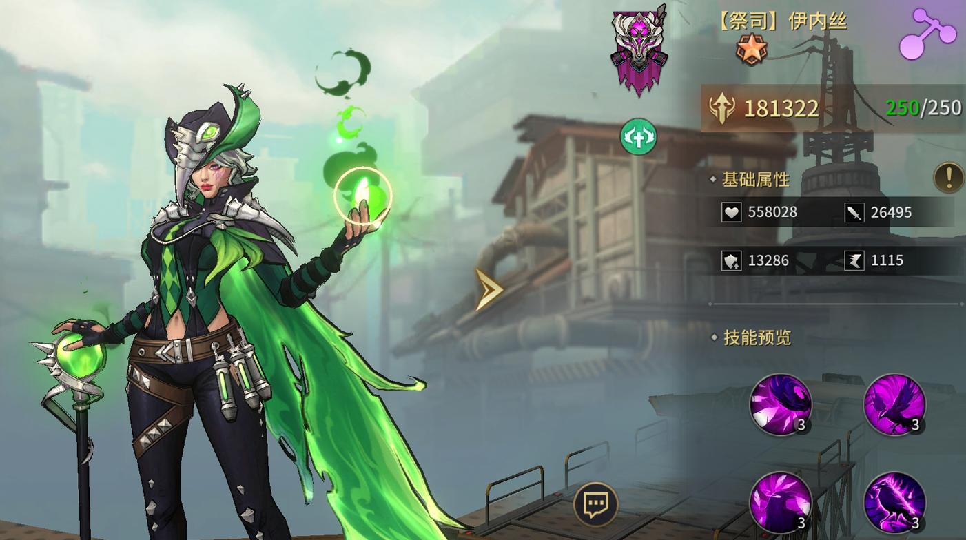 祭祀伊内丝——全能治疗兼控场手。主动技能覆盖4个敌方目标造成伤害,并为己方全体提供即时治疗与持续恢复效果;被动令普攻附加攻击增益与持续回血,且优先治疗当前生命最低的友方单位;当自身生命低于50%时,有概率触发全体沉默效果,同时大幅提升暴击率与暴击伤害,兼顾团队保护与关键时刻的战术反制。