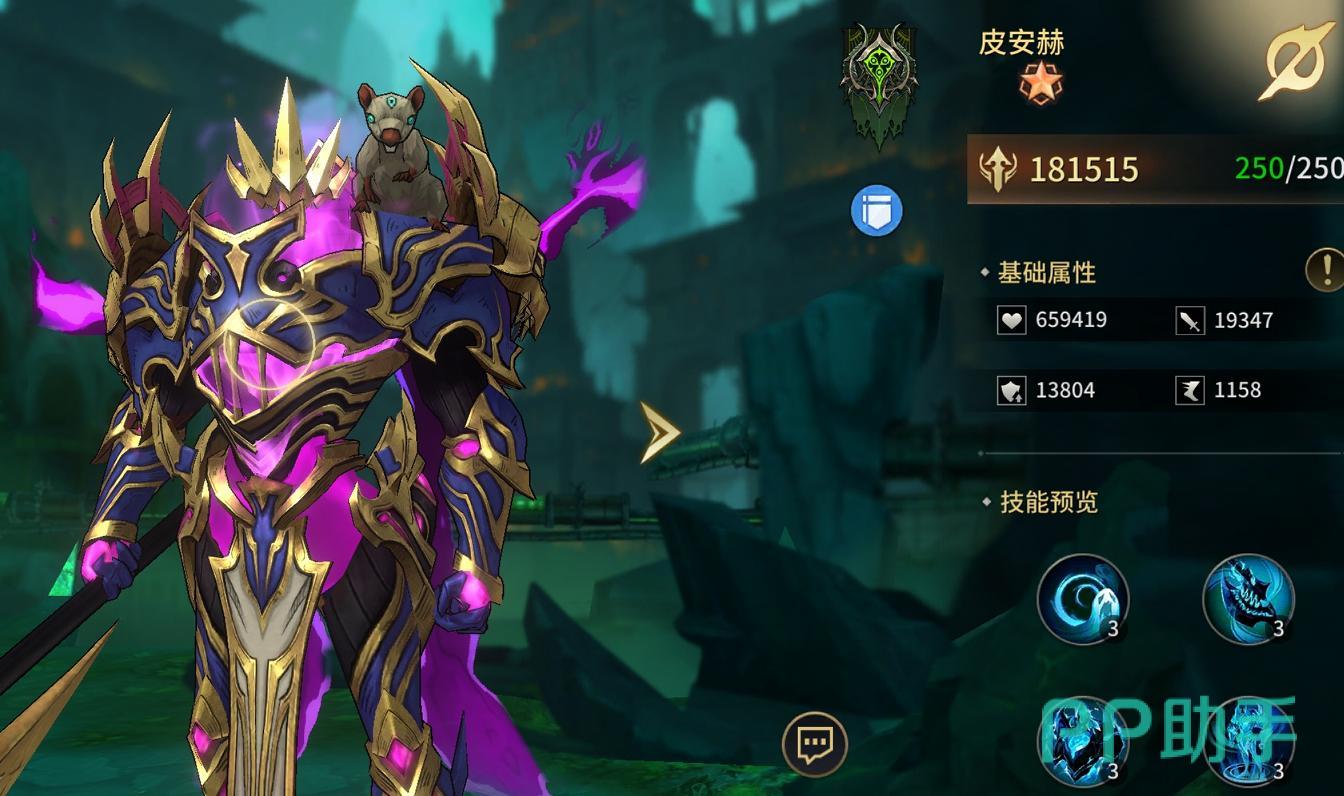 皮安赫——弹性后排守护者。主动技能针对敌方后排造成伤害并提升自身免伤率;被动使普攻附加追加伤害及概率石化效果,受击时有几率为目标添加附伤标记并触发自体回血;最具特色的是其“再入场”机制:首次退场后,下回合自动重返战场,显著延长战术存在周期,有效延缓敌方收割节奏。