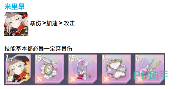 米里昂的全部技能均附带必中且必定暴击机制,这使其完全规避了暴击率养成成本,转而将暴击伤害作为唯一伤害放大器。因此暴伤属性是其装备构建的刚性门槛;速度则影响其在多段技能链中的衔接效率;攻击值仅作为底层乘区,在暴伤达标后才需考虑补强。
