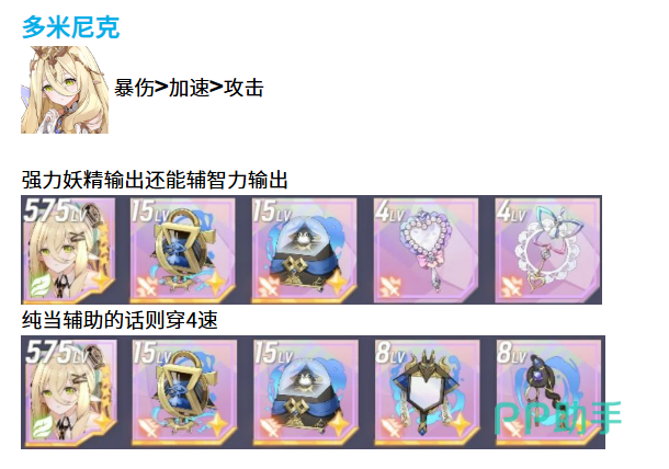 多米尼克具备双模输出能力:既可通过高暴击伤害对单体目标施加压制,亦能强化智力系队友的技能倍率。若侧重输出,暴击伤害为首要属性,速度用于优化出手顺序,攻击值作为基础伤害支撑;若定位为专职辅助,则四件套加速装备可最大化其增益释放频次,使其成为智力队核心节奏支点。