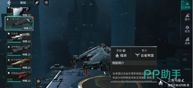 从舰种定位看,“三青鸟”属于特化型航空母舰,专为高机动空域作战优化。其搭载动能补偿引擎,确保在高速规避、急停转向及连续变轨过程中维持姿态稳定与推进响应;同时支持主炮模块热切换,玩家可根据对手编队构成(如重甲舰群或高闪避驱逐集群)实时更换对应弹道特性与毁伤类型的主武器,实现战术层面的动态克制。