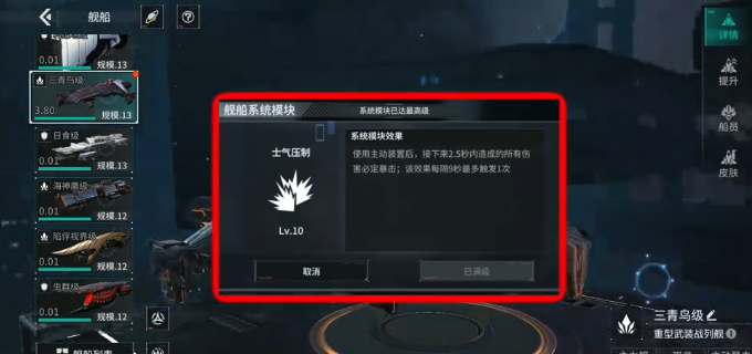 推荐首选舰船为“三青鸟”。其核心优势在于独有的“瞬时暴击锁定”机制:释放主动武器后2.5秒内,所有攻击均触发100%暴击率。该特性并非概率叠加,而是强制生效的确定性增伤窗口,在快节奏的机动缠斗中可实现伤害密度的质变。配合高基础伤害武器,能在敌方完成阵型重组前集中摧毁其护盾与主结构模块,达成高效斩杀。