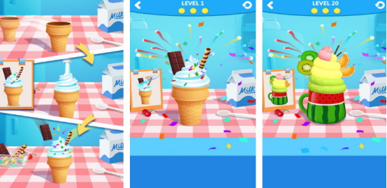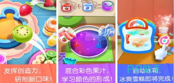 色彩缤纷的画面再搭配上简单的操作方式,也是专门为儿童进行创造。此游戏拥有着很深奥的教育意义,可激发孩子的创意,才能锻炼孩子的动手能力,这里涵盖的制作雪糕的材料,应有尽有,玩家可通过diy的方式,将不同的食材组合在一起。打造出口感独特的美味雪糕,比如有牛奶以及草莓等多种口味,玩家也可以通过口味混搭的方式制作出美味的雪糕。