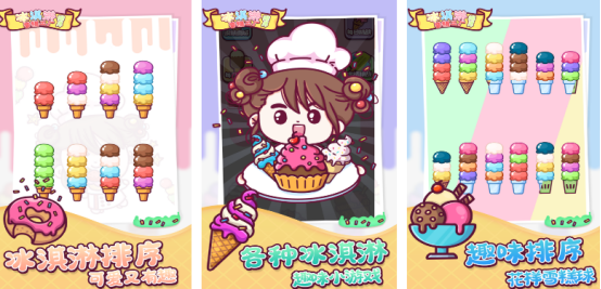 采用治愈性极强的画风,以制作雪糕作为主要的题材。这里有很多好看又美味的冰激凌,都等待玩家通过制作的方式来完成挑战。在开局后玩家将会看到色彩丰富的雪糕以及不同的脆筒,通过点击屏幕的方式将相同颜色的雪糕和相应的脆筒放在一起就能完成挑战。这里涵盖的脆筒皮肤有很多,玩家可通过解锁的方式拥有花样皮肤。