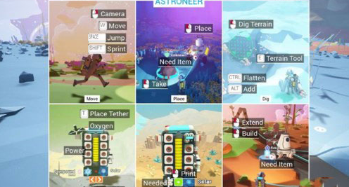 Q键用于快速打开背包界面,支持对矿物、合成材料及工具进行分类整理;E键执行交互动作,包括采集地表资源、挖掘岩层或拾取散落物品;T键可部署氧气桩,该装置能持续释放局部氧气,是远程勘探时维持呼吸安全的关键节点。Ctrl键启用地面平整功能,适用于建造平台或校准建筑基底;Alt键则用于地形微调——填平凹陷或抬升低洼区域。数字键1至4对应预设动作表情,便于多人联机中实现非语音沟通。信标无需复杂操作,投掷于地面即自动激活定位与导航功能。