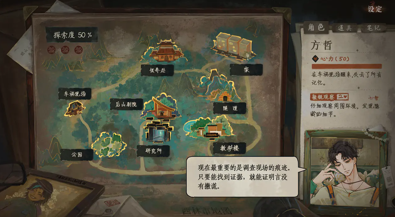 游戏采用非线性文字交互机制,强调环境探索与逻辑推演。玩家需主动点击场景内可交互物件,收集隐匿文本、图像与声音线索,通过自主推理完成记忆链重建。剧情结构上构建三重叙事轴心:主角个体意识复苏进程、父母双线过往真相、以及父子关系在时间褶皱中的映照与错位。三条线索并非平行推进,而是在关键对话、旧物触发与闪回片段中彼此渗透、互为印证,最终共同指向考古失踪事件的根源,以及赤乌神信仰系统中被长期遮蔽的历史断层。