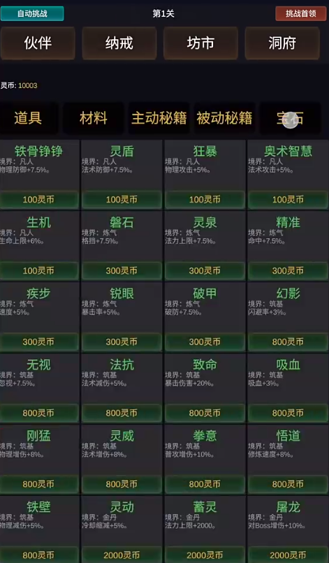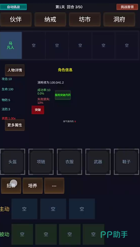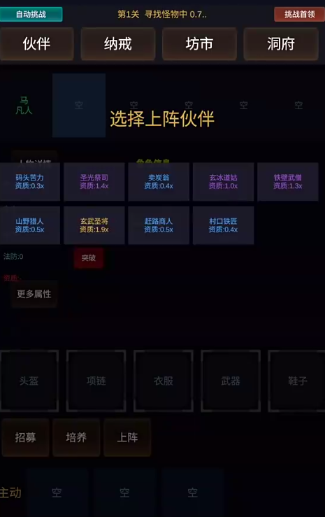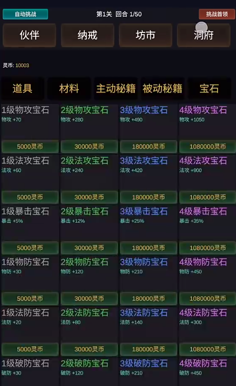 本作采用单手竖屏操作设计,大幅降低入门门槛。玩家初始身份为无名散修,需通过推图闯关、击败精英首领、完成日常历练等方式积累修为值,驱动角色持续进阶。游戏摒弃繁复操作逻辑,聚焦“破境—涅槃—再破境”的修真主轴,每一重境界跃迁均伴随战力质变与技能重构,助力玩家从底层修士稳步成长为执掌一方的仙道巨擘。