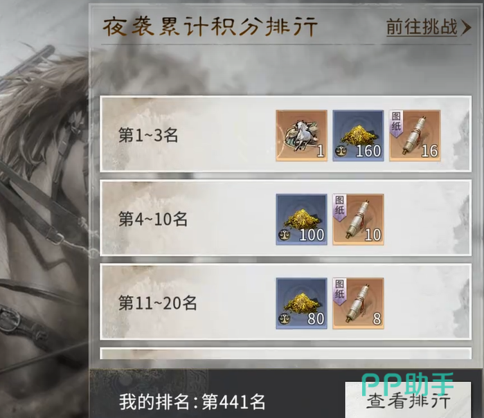 活动入口位于游戏主界面——点击【征战】→进入【个人玩法】分页,即可找到“夜袭”图标。进入后,玩家需依次挑战多位守卫目标,每场胜利均可获得固定积分。积分累计将推动段位提升,而段位直接决定每日奖励品质与数量。