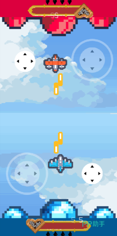 紧张刺激的射击对战带来了极致的合作与竞争体验。两名玩家分别操控手机的不同部分,蓝方与红方并肩作战,目标是摧毁敌方水晶。你需要时刻留意燃油的消耗,合理运用技能,像无人机和空中堡垒这样的战术性工具将决定战局的走向。简单的操作配合复杂的战术设计,让每一场对决都充满惊险和挑战,适合喜爱策略与快速反应的玩家。