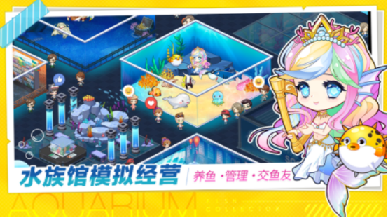 以特别受欢迎的模拟经营题材为主,您在这里将要化身成为水族馆当中的馆主,要用心管理着自己的水族馆,在这里收集了上百种不同的海洋生物,还有特别唯美的美人鱼。游戏涵盖了不同的任务,比如当游客遇到任何危机时,都需要及时帮助游客化解危机,在完成任务的过程中,还能了解到很多海洋的科普知识,还可和更多的游客展开独特的故事游戏。还提供了公会的任务挑战,您可以在公会中和其他的好友一起养鱼。