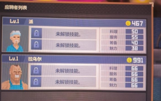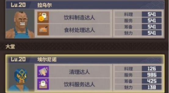 此外在烹饪以及服务方面也特别的优秀,虽然从整体的外观上来看,并不是特别受欢迎,可能无法和其他员工相比,但是实际制作料理的过程当中速度非常快,而且在接待顾客的时候,也会将最优质的服务展现出来。当得到了顾客的满意度以及认可之后,就能让玩家获得更多收益,提升整体店铺的收益额。