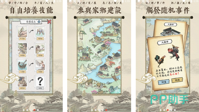 《古代乡村人生》是以古代乡村为背景的经营策略手游,你将扮演村庄的管理者,通过种植农田和养殖家畜的方式来发展村落,体验乡村生活的快乐。除了种植玩法外,你还可以与村庄的其他npc建立友好关系,完成他们的委托,解锁更多的剧情和地图。游戏采用的是古典水墨画风,节奏轻松且愉快,非常适合咸鱼玩家。