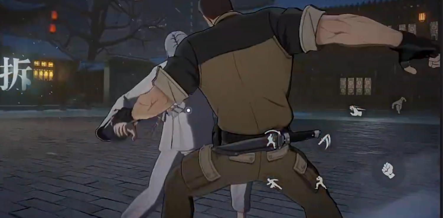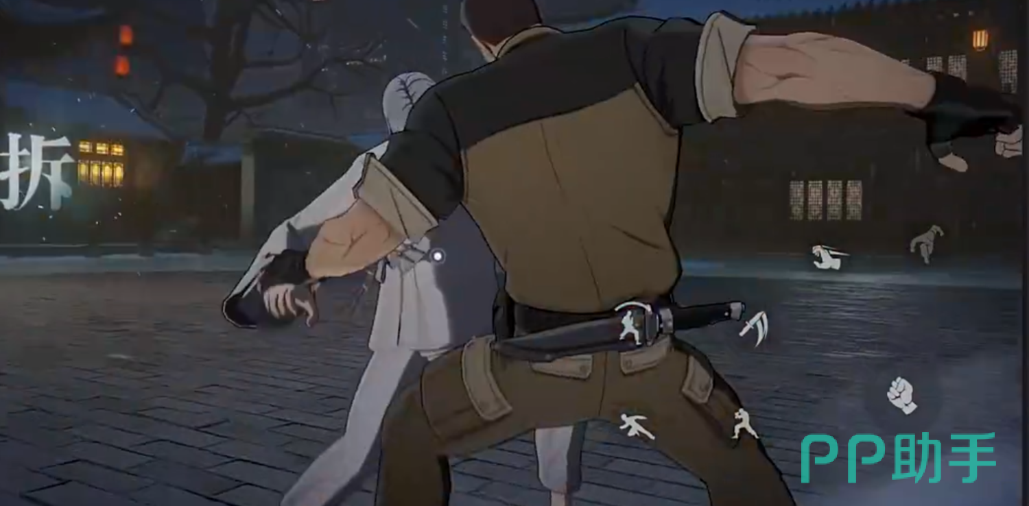 基础连段共四击:前三段为节奏紧凑的拳肘交替打击,最后一击为高判定侧踢,具备强制倒地效果,是衔接后续追击的关键起手式。“飞鸟摔投”为投技类技能,通过破坏敌方重心实现反向惯性摔投,全程霸体且可打断多数非强控动作。“极速连斩”为突进型匕首技,向前直线冲刺并发动多段斩击;长按可延长突进距离,若命中已倒地目标,则自动转化为“电光追斩”,触发地面追击并缩短该技能冷却时间达40%。