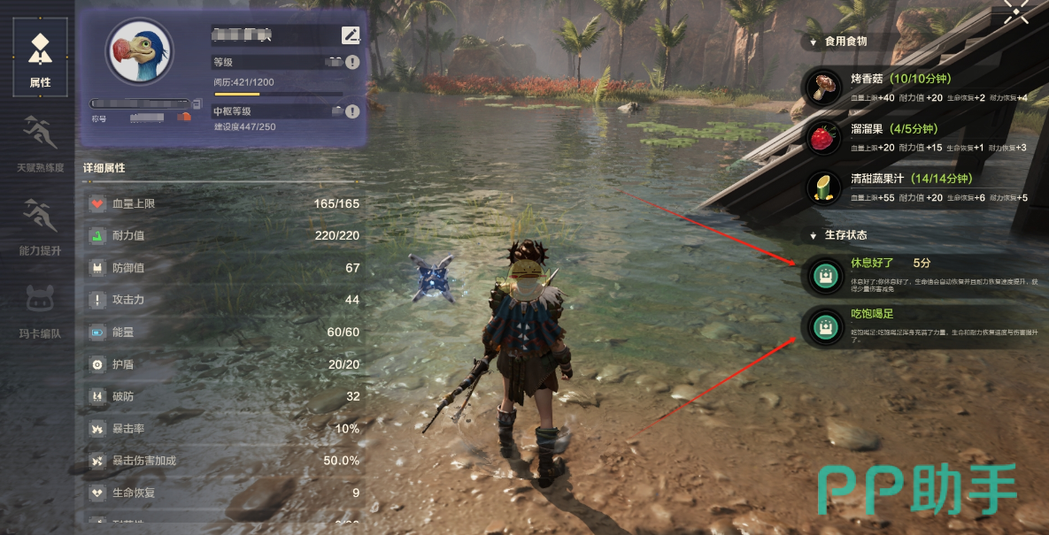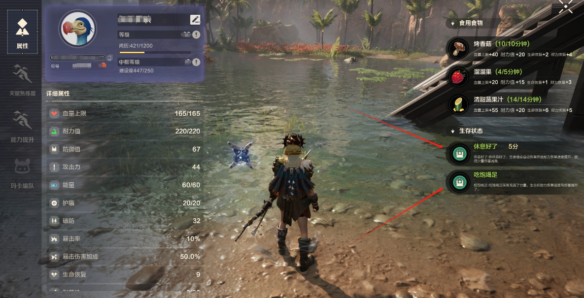目前在游戏中角色的生存状态还是比较多的,首先如果说小伙伴们食用了三种不同的食物,那么就会进入到吃饱喝足的状态。这也是游戏中最稳定的状态,不仅伤害会大幅度提升,同时耐力恢复的速度也会提高。因此小编建议大家如果需要出门进行一些战斗类的活动,那么尽可能的在保持这个状态的情况下出门。或者大家也可以提前先准备好一些食物,这样如果说在路上状态不佳,也可以及时的补充回来。