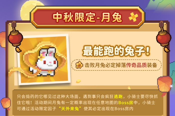 说到本次活动的亮点,怎么能不提神秘而快速的“月兔”呢?在中秋活动期间,玩家们将会在关卡中偶遇这个特殊的活动敌人。与一般的怪物不同,月兔的行动极为敏捷,通常看到玩家的第一反应就是迅速逃跑,因此需要玩家们以最快的速度击败它。虽然抓住它需要一定的技巧和反应速度,一旦成功,月兔会掉落一件传奇品质的装备。