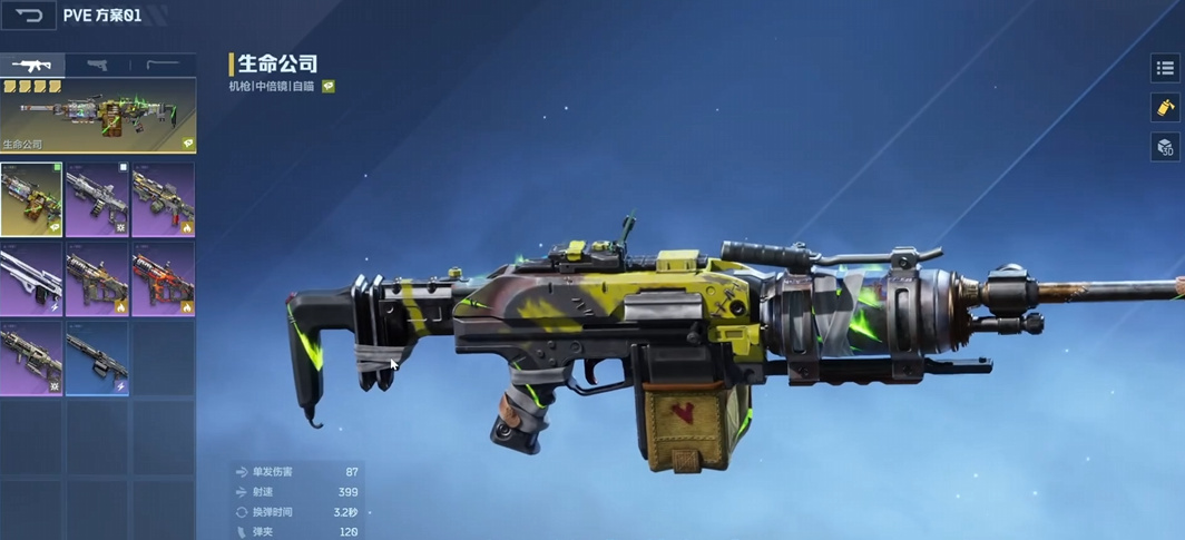 生命公司为重型机枪类武器,拥有超大弹匣容量,大幅减少换弹频次,利于维持持续压制节奏,在塔防模式中优势明显。主动技能可在角色正前方生成一道能量墙壁,并为周围队友提供临时护盾,有效阻断敌方火力输出。被动技能“生命注入”使击杀敌人时有33%概率自动装填6发子弹,无需调用备用弹药;另一被动则在技能激活期间启用自动瞄准机制,显著提升命中率与操作容错率。